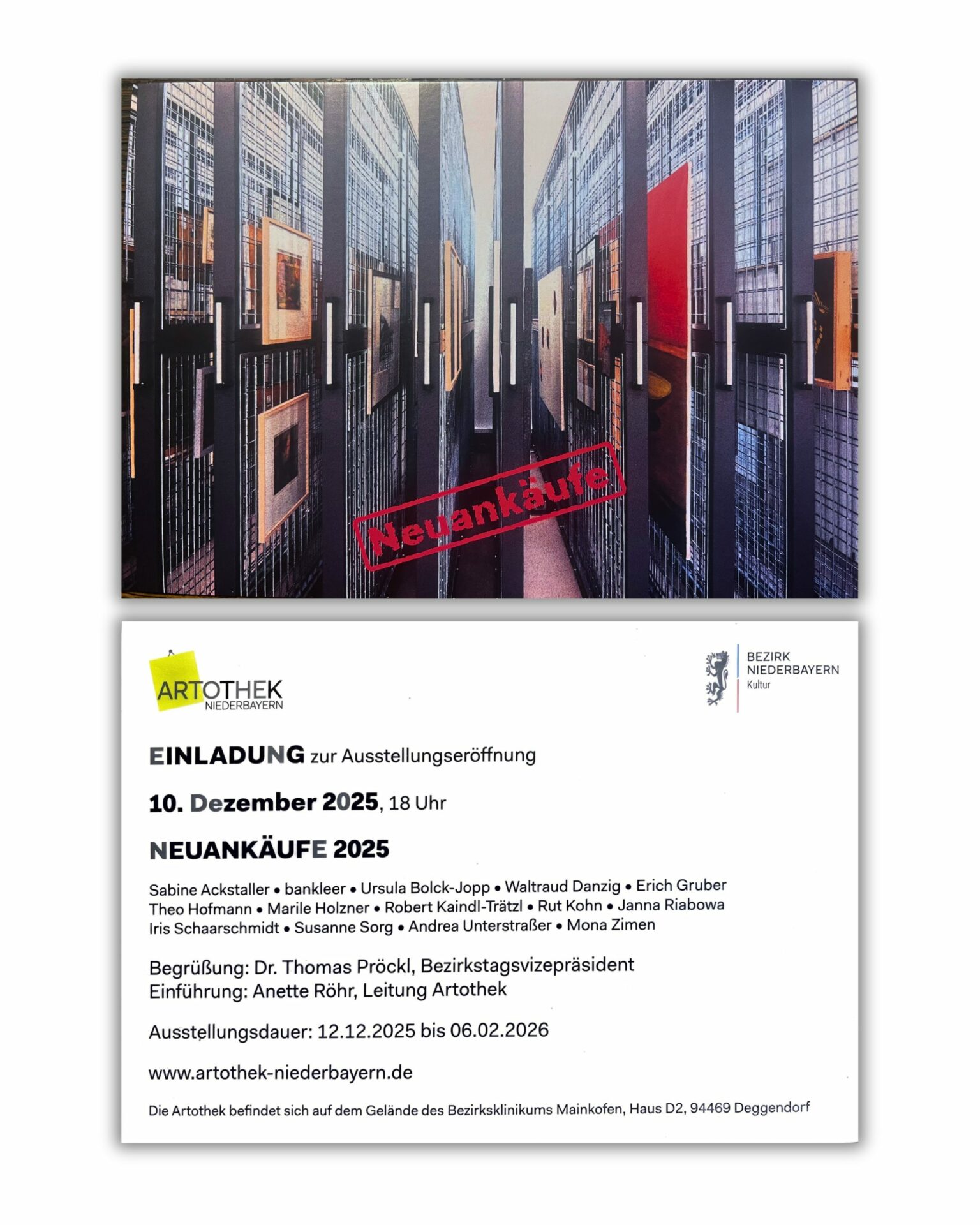 Besonders freut es mich, dass zwei meiner Werke - eines aus Glas und eines aus Papier - von der Artothek Niederbayern angekauft wurden.