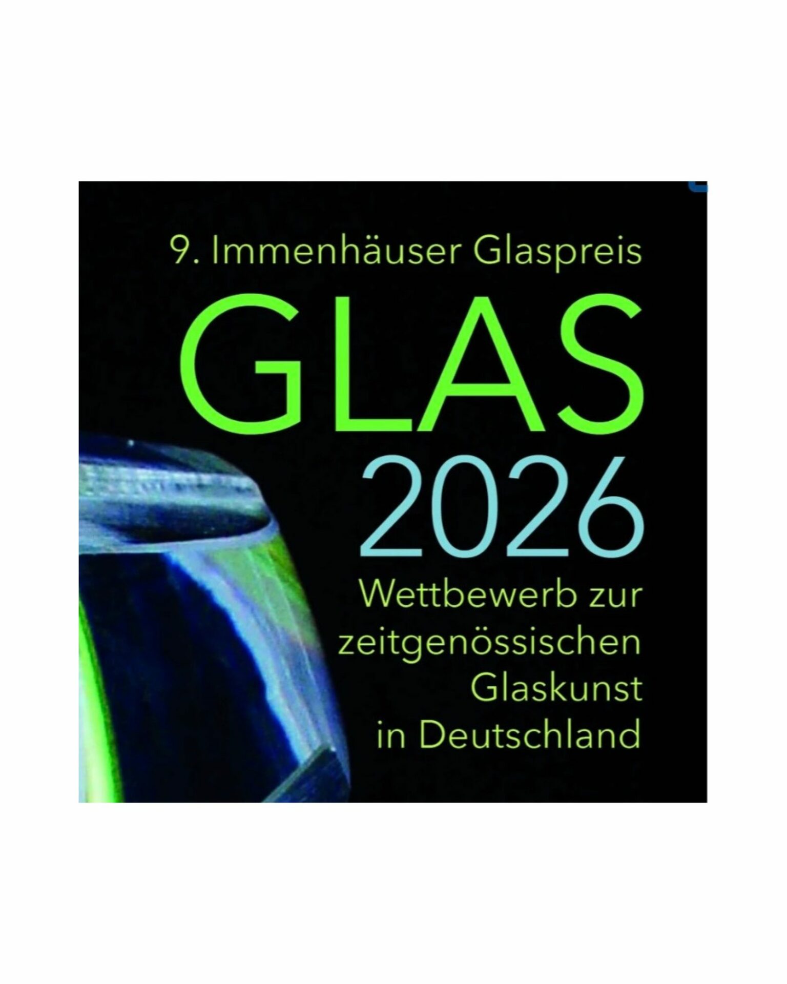 Am 9. Mai 2026 eröffnet im Glasmuseum Immenhausen die Ausstellung GLAS2026 mit anschließender Preisvergabe „Immenhäuser Glaspreis.“ Die Finissage findet am 31.10.2026 statt. Die genauen Öffnungszeiten werden noch bekanntgegeben. Informationen über die Ausstellung: HIER