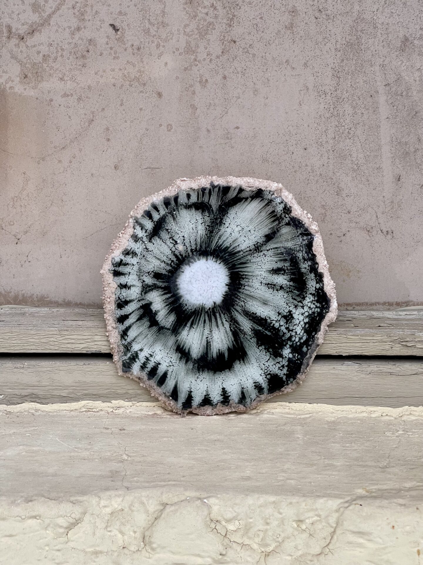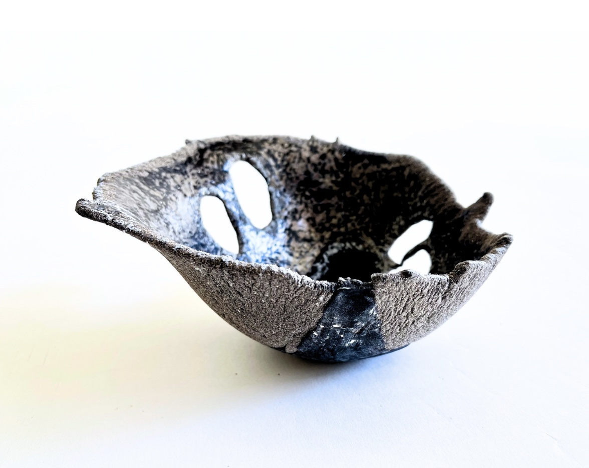 The bowl-shaped, fragile objects made of glass and paper by artist Susanne Sorg emerge from a process-oriented dialogue with material and space. The surfaces of the objects evoke earthy, organic structures, marked by fractures, textures, layers of color, and delicate drawings. Her works are characterized by the recurring presence of opposites held in tension, reflecting the complexity of change and development.
