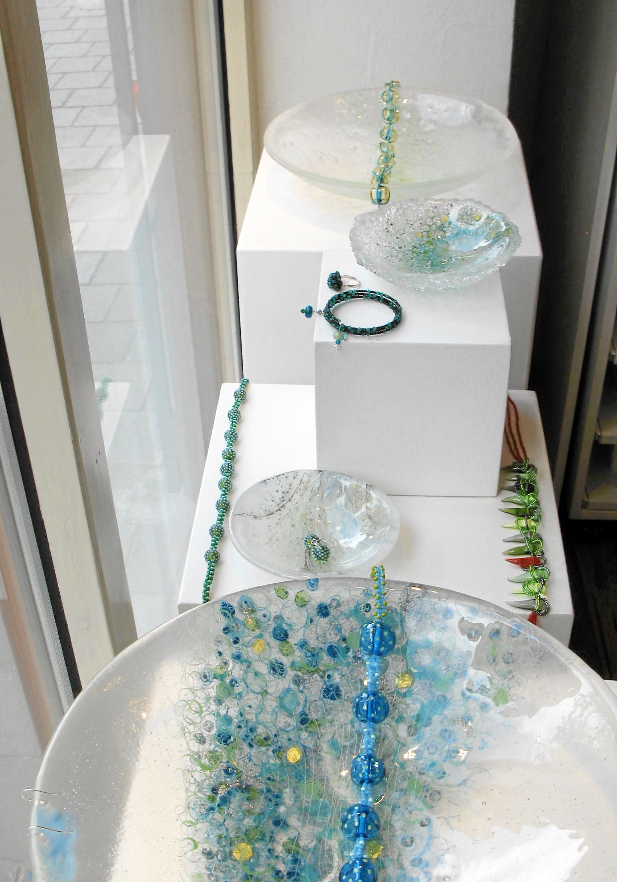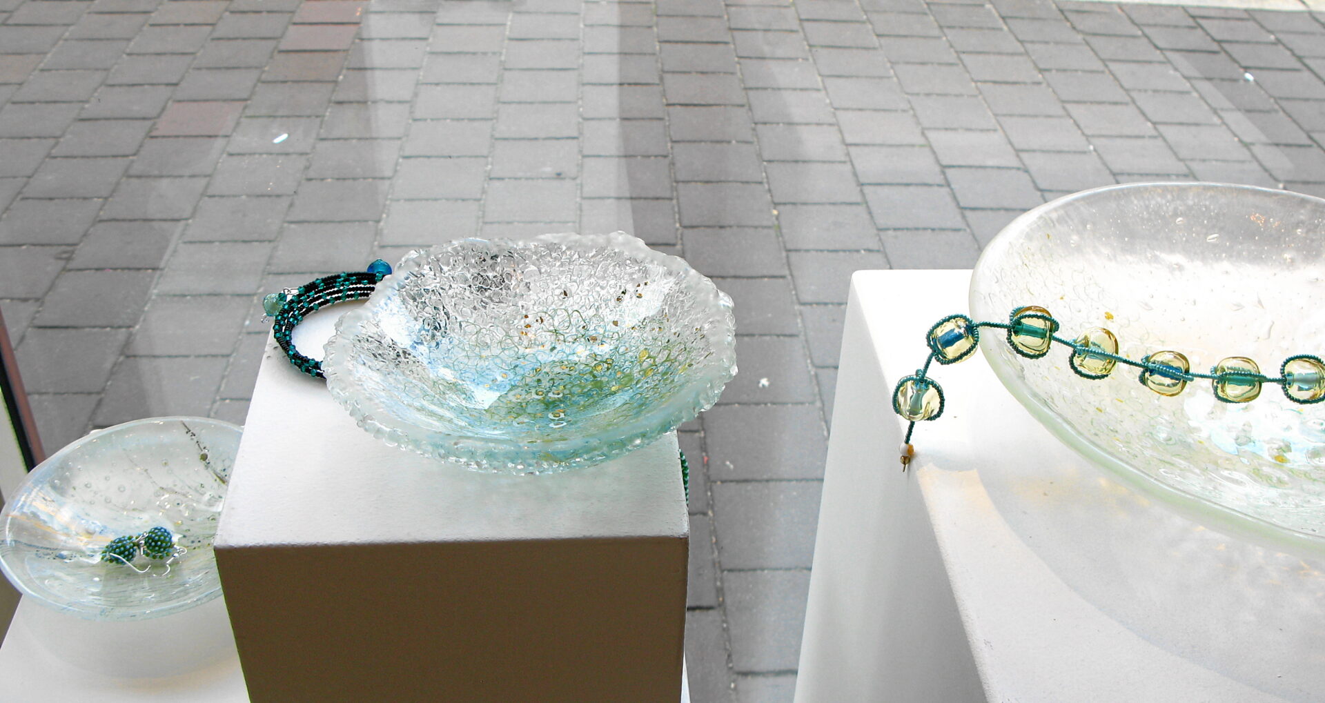 2015 | Ausstellung Kleine Welten – Glas als Träger für Malerei und Zeichnung – perletti, Augsburg | Fotos und Schmuck: Dagmar Rippl