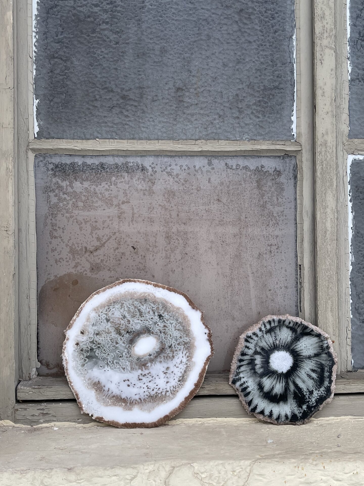 2024 – 2025 | Werkreihe „Innere Landschaften“ – Tragbare Erinnerungen | Schmuck aus Glas und Papier | Weitere Infos zu dieser Werkreihen finden Sie HIER